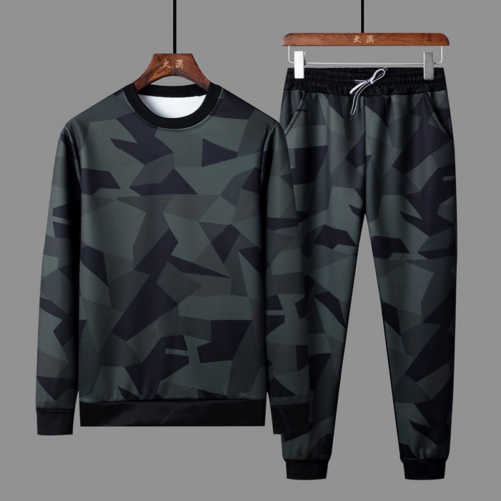 Autumn New Trend Men's Casual Sports Suit Sweater Trend Camouflage Two-Piece Men