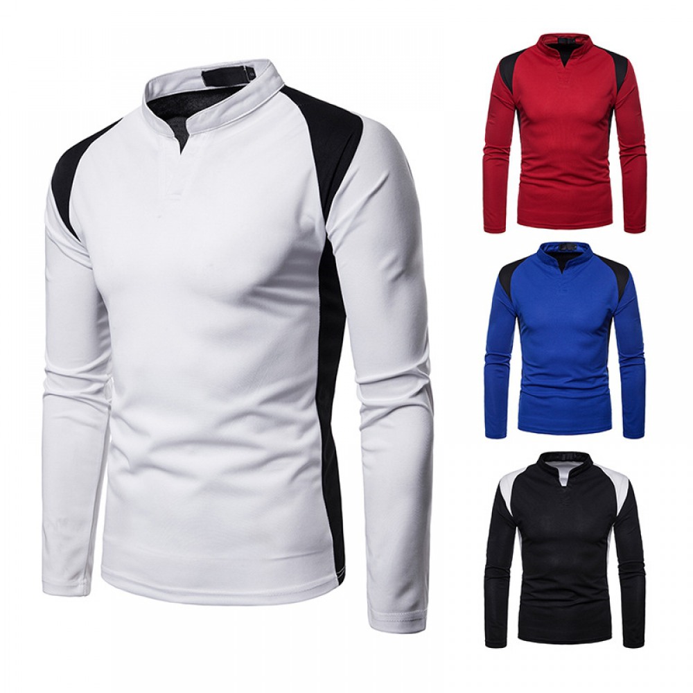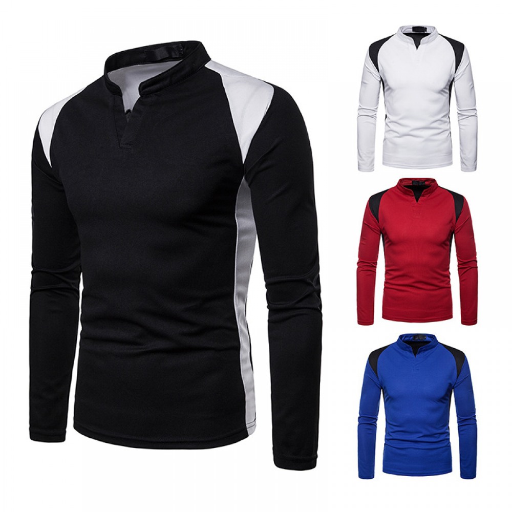 Men's Irregular Stitching Long-Sleeved Plus Size Henry Collar T-Shirt