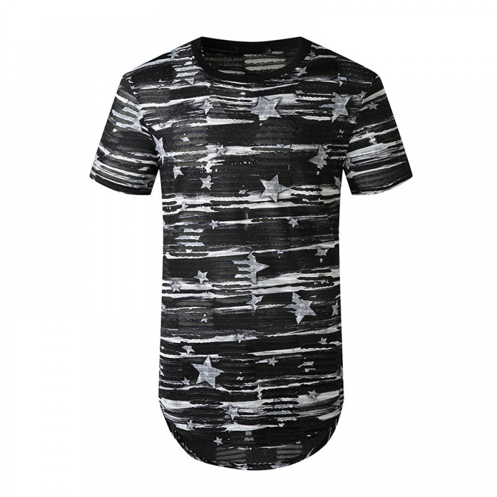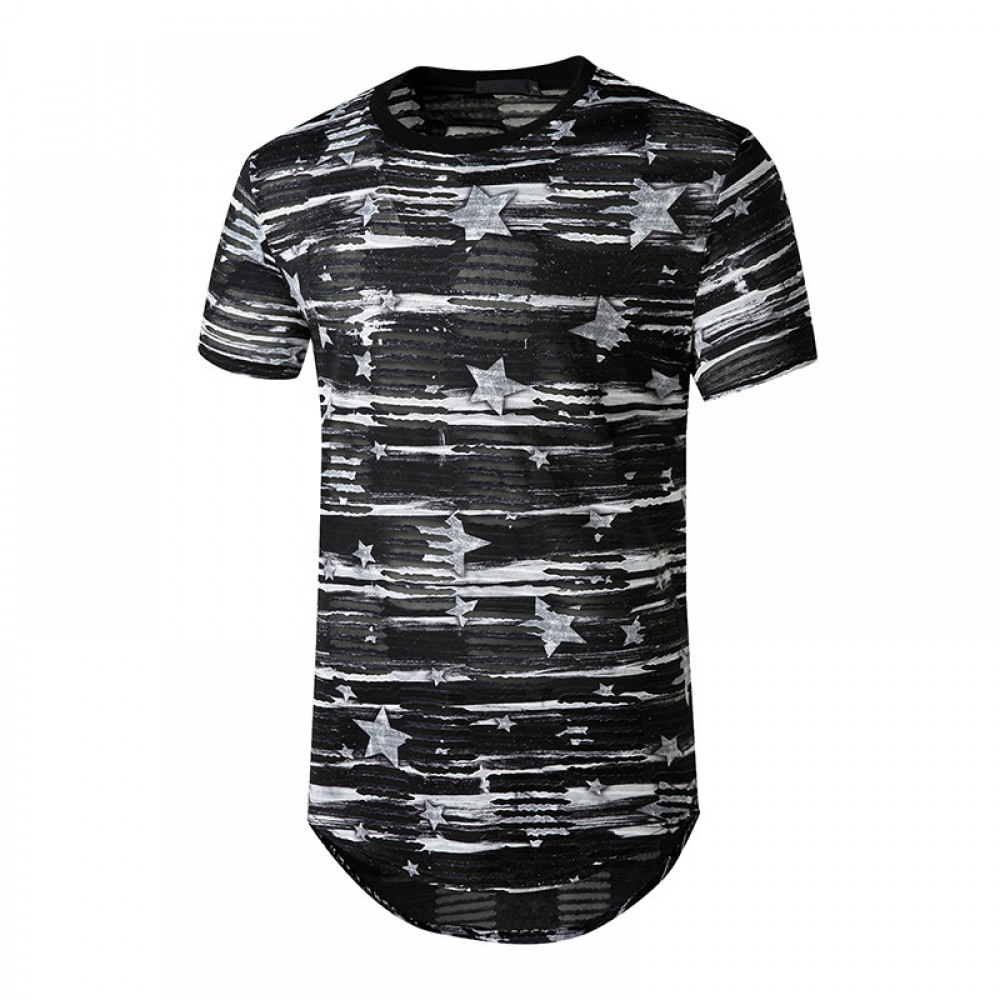 New Men's T-Shirt Slim Mid-Length Color Matching