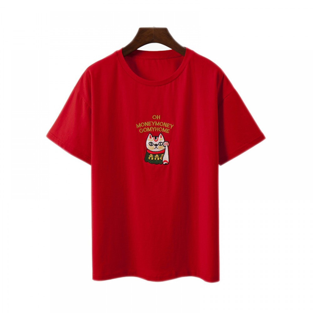 New Plus Size Women's Summer Dress Fat Extra-Large Size Womens Slimming Lucky Cat Short-Sleeved T-Shirt