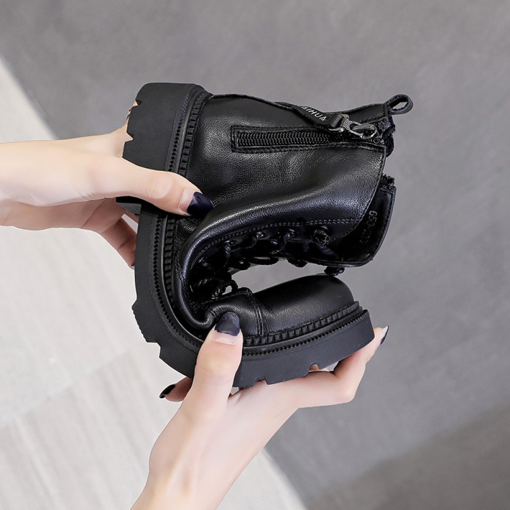 Autumn New Round Toe Thick Bottom Tube Black Short Martin Boots Trend