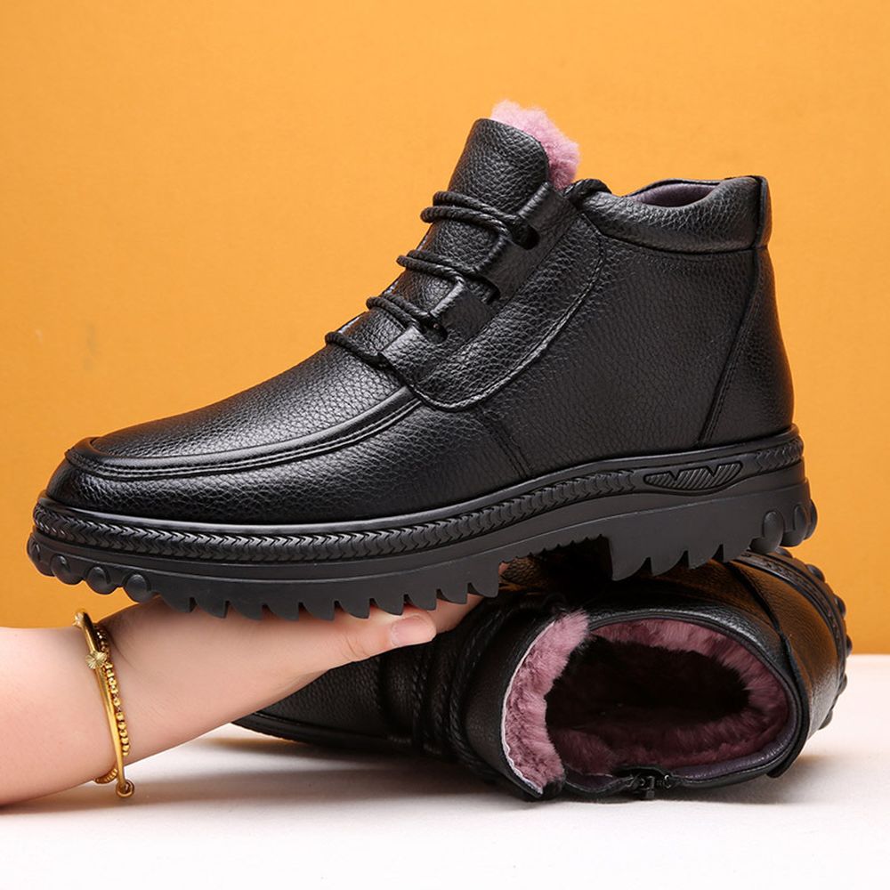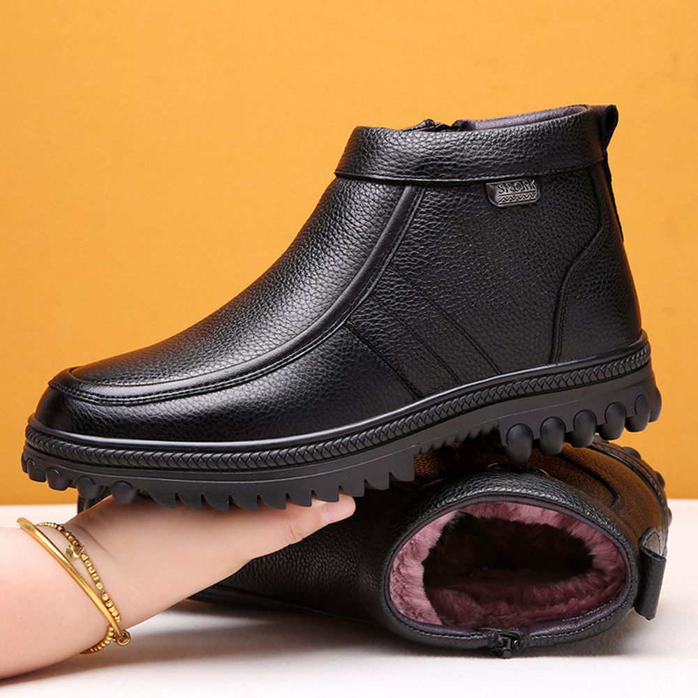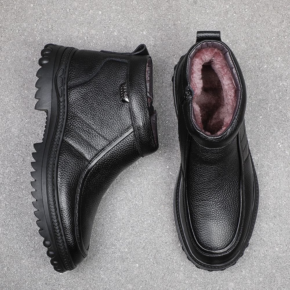 Winter Men's Cotton Shoes Leather Wool Outdoor Warm Boots