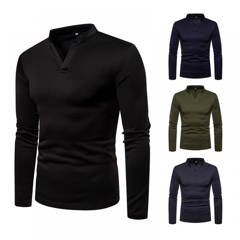 Men's Plus Size Plus Velvet Warm V-Neck Long-Sleeved T-Shirt Base Shirt