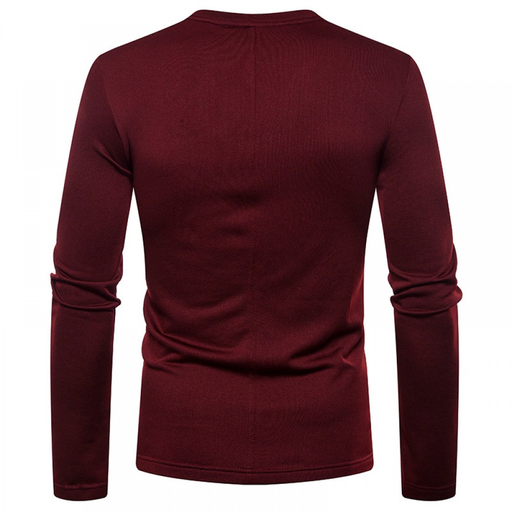 Men's Plus Size Plus Velvet Warm V-Neck Long-Sleeved T-Shirt Base Shirt