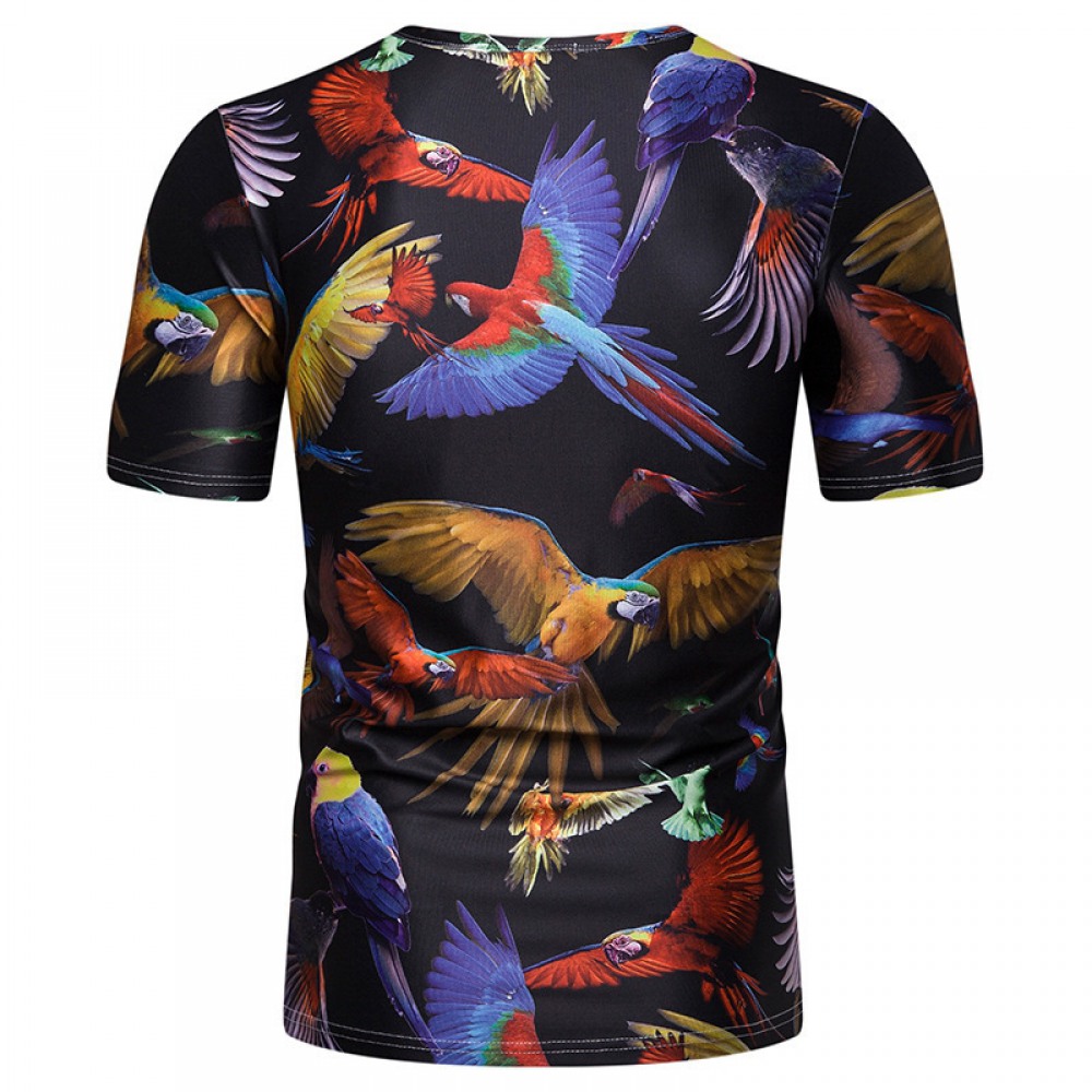 New Summer Men's Parrot Print Short Sleeve T-Shirt
