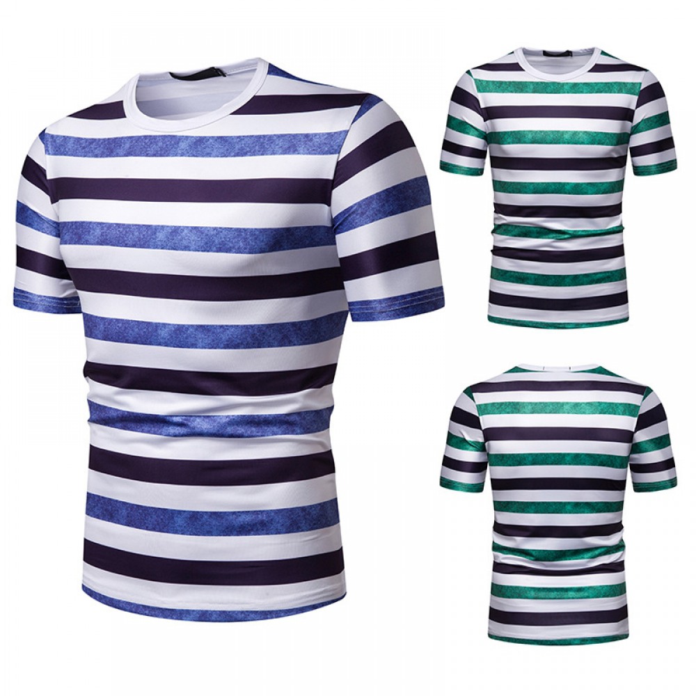 New Summer Men's Short-Sleeved T-Shirt Mens Contrast Striped Slim Casual T-Shirt