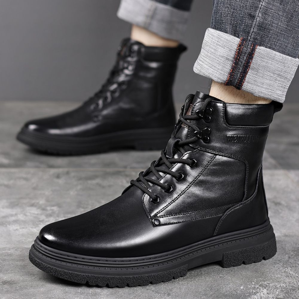 Men's Autumn New Fashion Casual Add Velvet Warm Leather High-Top Martin Boots